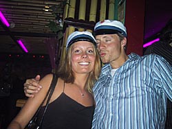 Først et kys til ham med huen. |