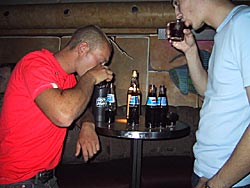 Så startede vi op med den første flaske. |
